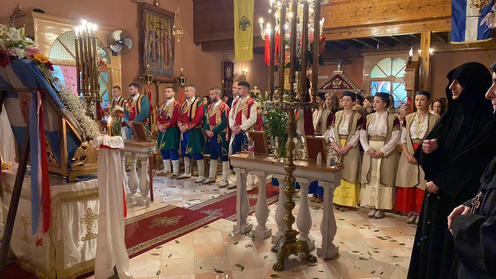 Μεταξύ του εκκλησιάσματος ήλθε μια ομάδα εκδρομέων από το Μαυροβούνιο της Σερβίας, και ιδιαίτερα από την πόλη του Μπάρ. Με τις παραδοσιακές τους στολές, νέοι και νέες στο τέλος της πανηγυρικής Θείας Λειτουργίας, τραγούδησαν και χόρεψαν στον προαύλιο χώρο του ναού και παραδοσιακούς χορούς.