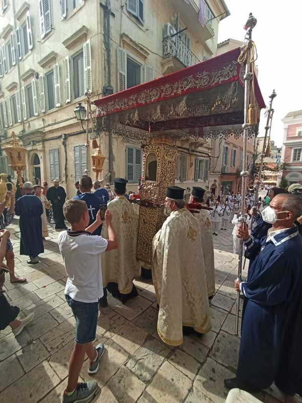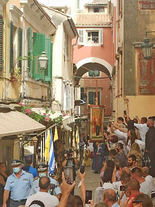 Εορταστικές εκδηλώσεις στη Κέρκυρα της 11ης Αυγούστου 2021 για τη διάσωση του νησιού, με τη θαυματουργική επέμβαση του Αγίου Σπυρίδωνος από την απειλή των Αγαρηνών το 1716.