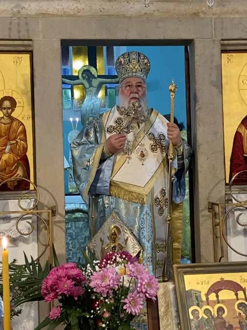 Σήμερα οι άνθρωποι ζουν σε μία σύγχυση ανάλογη με την σύγχυση της εποχής του πύργου της Βαβέλ. Έχουμε σκεφτεί σήμερα γιατί βρισκόμαστε εδώ στον ιερό ναό; Τι αναζητούμε; Αναζητούμε τον Χριστό, ο οποίος είναι πάρων στη ζωή εκείνου, ο οποίος τον αναζητεί χθες και σήμερον και εις τους αιώνες. Από εμάς εξαρτάτε εάν ο Χριστός θα είναι παρών στη ζωή μας. Στο τέλος ο Σεβασμιώτατος ευχαρίστησε τους πατέρες που συλλειτούργησε και ευχήθηκε κάθε καλό στο πολυάριθμο εκκλησίασμα.