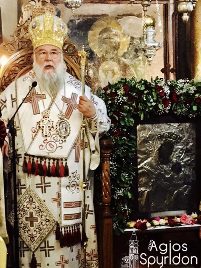 Στο κήρυγμά του ο Σεβασμιώτατος παρουσίασε το ιστορικό του θαύματος της ομματώσεως του Στεφάνου, ο οποίος είχε κατηγορηθεί αδίκως για κλοπή, με αποτέλεσμα να τιμωρηθεί με εκρίζωση των ματιών του. Τότε λοιπόν ο Στέφανος μετέβη στο ναό της Παναγίας, στην Κασσιώπη. Εκεί προσευχήθηκε ολόκληρη την νύχτα, επικαλούμενος την Χάρη του Θεού, έμπροσθεν της θαυματουργού εικόνος της Θεομήτορος και το πρωί η όρασή του είχε αποκατασταθεί. Η Κυρία Θεοτόκος, δια των πρεσβειών Της στον Υιό και Θεό Της, χάρισε τους οφθαλμούς στον Στέφανο. Πολλοί άνθρωποι αναρωτιούνται τί είναι το θαύμα ; Είναι η Άκτιστη Χάρις, ο Παράκλητος, που ενεργεί στον κόσμο. Την Θεία Χάρη αντιλαμβάνονται μονάχα εκείνοι που αγωνίζονται για την Θεογνωσία στην ζωή τους και τότε συντελείται το θαύμα.