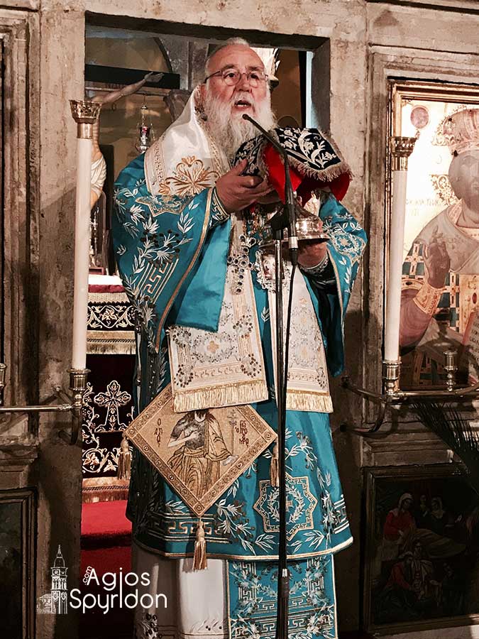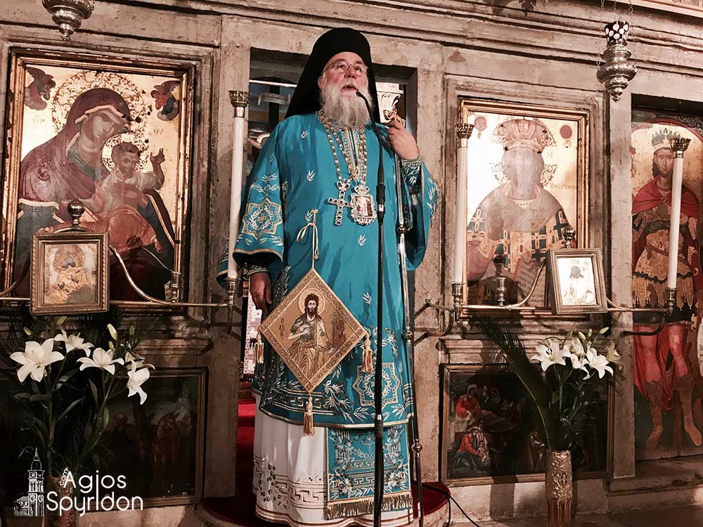 Στο κήρυγμά του ο Μητροπολίτης Κερκύρας επεσήμανε ότι ο Τίμιος Πρόδρομος ήτο ο πρώτος ο οποίος ομολόγησε την Τρισυπόστατη Θεότητα. Η Ευαγγελική περικοπή της ημέρας αναφέρει την ομολογία του Προδρόμου. Ο Άγιος Ιωάννης ομολογεί ότι ο Θεός Πατέρας αποκάλυψε σε εκείνον τον Μεσσία, τον ενσαρκωμένο δηλαδή Λόγο και το σημείο της αναγνωρίσεως ήταν το Πανάγιο Πνεύμα, που κατήλθε επί της κεφαλής Του. Αυτόν τον ενσαρκωμένο Λόγο ομολόγησε και κατέδειξε.