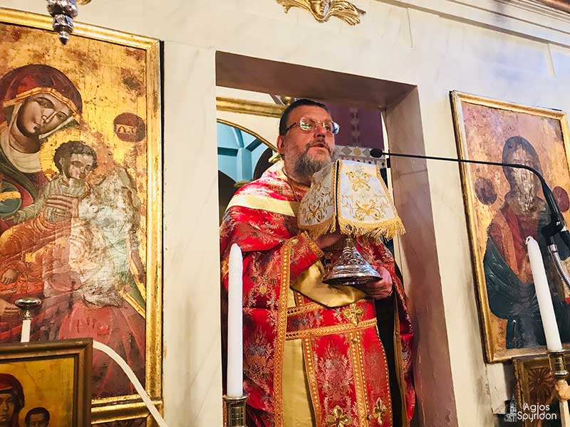 Το θείο λόγο κήρυξε ο Πανοσιολ. Αρχιμ. Σεραφείμ Λινοσπόρης, Ιεροκήρυκας της Ι.Μ. Κερκύρας, ο οποίος τόνισε ότι οι Άγιοι Μάρτυρες αποτελούν τα στηρίγματα της Εκκλησίας μας, είναι οι πύργοι και οι πρόμαχοι της Πίστεώς μας. Ο Άγιος Ιερομάρτυς Χαράλαμπος είχε καρδιακή πίστη στο Χριστό και υπηρέτησε την αλήθεια, η οποία δεν είναι μια ιδέα, αλλά Πρόσωπο, ο Ίδιος ο Κύριός μας.
