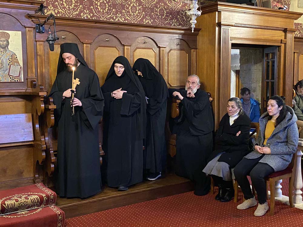 Στην Ιερά Μονή Αγίων Θεοδώρου του Τήρωνος και Αγίου Γεωργίου στην περιοχή Στρατιά της πόλης της Κέρκυρας λειτούργησε το πρωί του Σαββάτου 20 Ιανουαρίου 2024, επί τη μνήμη του Οσίου Ευθυμίου του Μεγάλου.