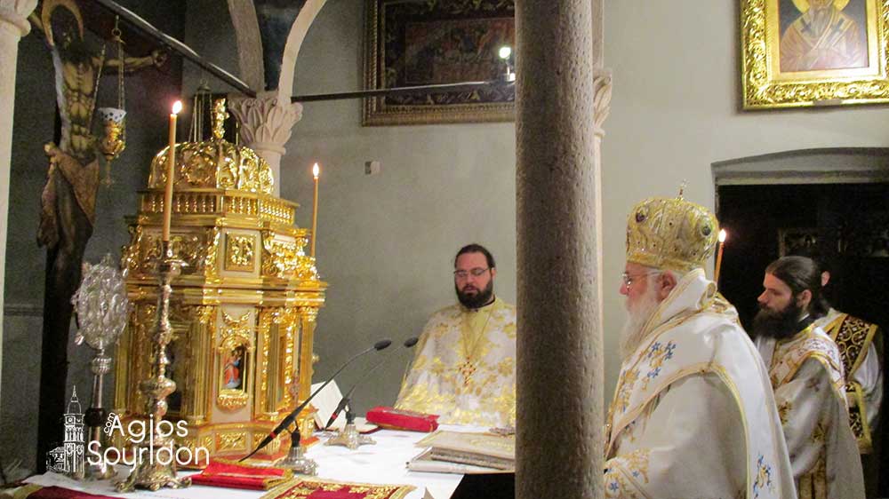 Την Κυριακή 24 Δεκεμβρίου 2017 τελέστηκε στο Ιερό Προσκύνημα του Αγίου και Θαυματουργού Σπυρίδωνος ο Όρθρος και η Θεία Λειτουργία, ιερουργούντος του Σεβασμιωτάτου Μητροπολίτου Κερκύρας, Παξών και Διαποντίων Νήσων κ. Νεκταρίου.