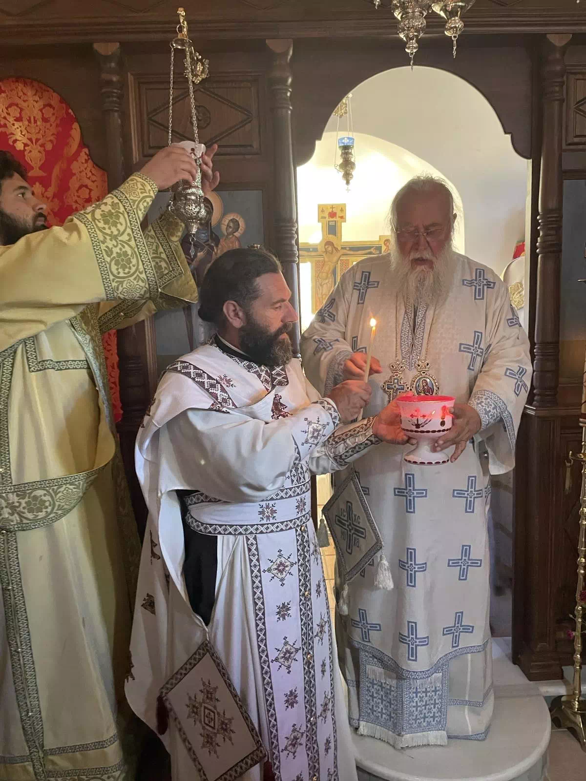 Κατά την διάρκεια των εγκαινίων, ο Σεβασμιώτατος εξηγούσε τα τελούμενα στους παρισταμένους ανθρώπους, προκειμένου να κατανοούν αυτά τα οποία τελούνται. Στη συνέχεια, μετά τον εγκαινιασμόν, τελέσθηκε και η πρώτη Θεία Λειτουργία στο νέο θυσιαστήριο.