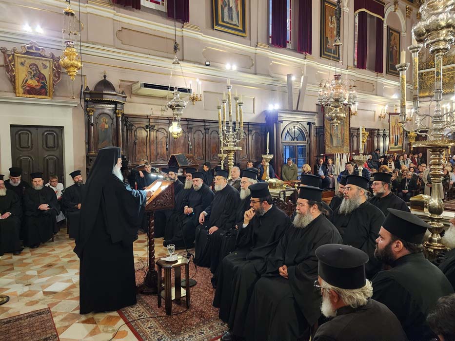 Στο τέλος της ομιλίας διάβασε την συγχωρητική ευχή προς τους ιερείς και τους πιστούς εν όψει της αγίας και μεγάλης Τεσσαρακοστής.