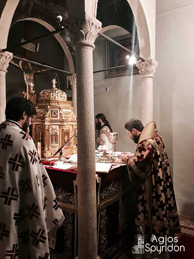 Την Δευτέρα 18 Δεκεμβρίου 2017 τελέστηκε στο Ιερό Προσκύνημα του Αγίου και Θαυματουργού Σπυρίδωνος ο Όρθρος και η Θεία Λειτουργία, ιερουργούντος του Μητροπολίτου Βολοκολάνσκ κ. Ιλαρίωνος.