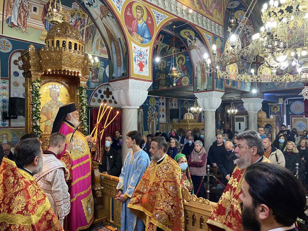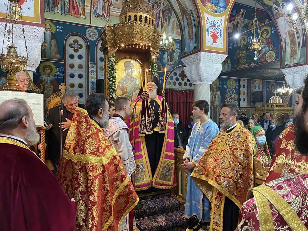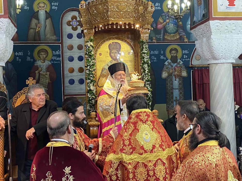 Στο τέλος ο Σεβασμιώτατος αναφέρθηκε συναισθηματικά στην παρουσία του σ’ αυτό τον Ιερό Ναό, όπου μεγάλωσε και ανδρώθηκε πνευματικά, καθώς και στα παλαιότερα και νεότερα πρόσωπα, είτε συγγενικά είτε φιλικά. Ιδιαίτερα όμως έκανε μνεία στο πρόσωπο του αειμνήστου πατρός Σταματίου αλλά και στον κατά σάρκα υιό του, ο οποίος έπειτα από είκοσι μέρες τον ακολούθησε στον Ουρανό.