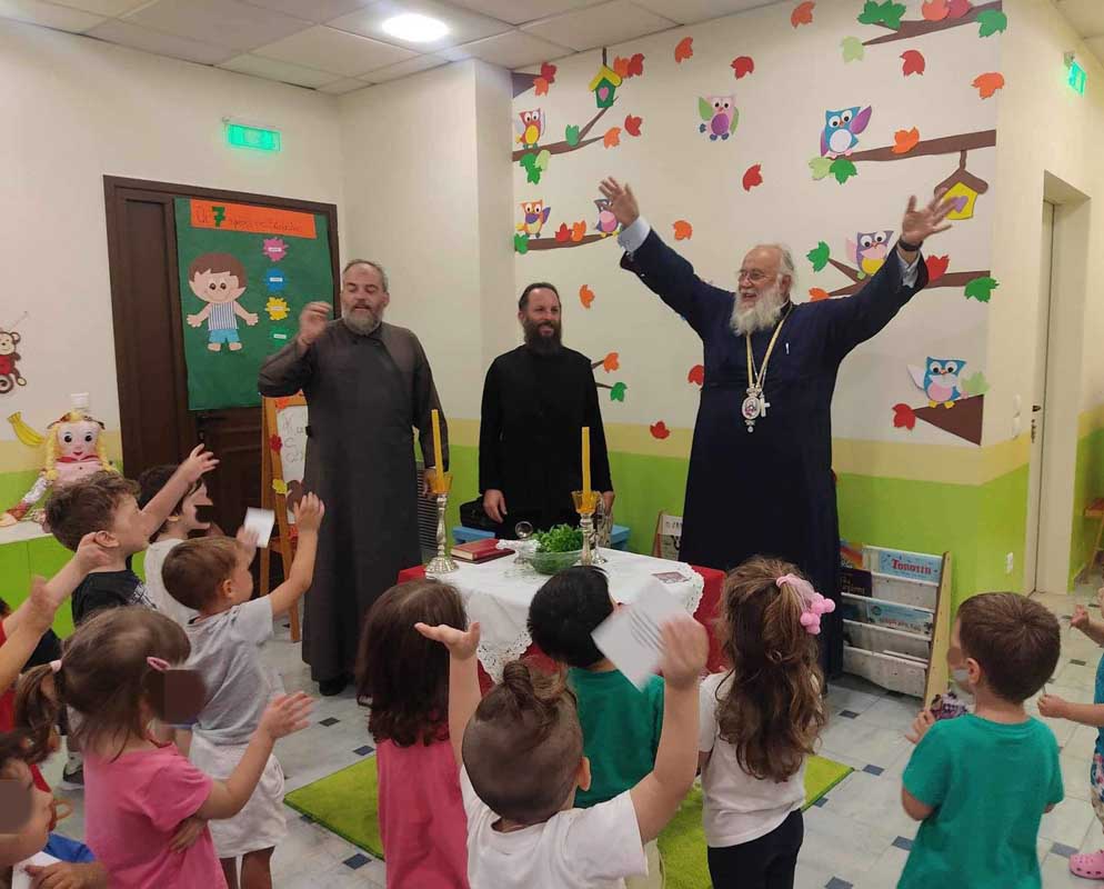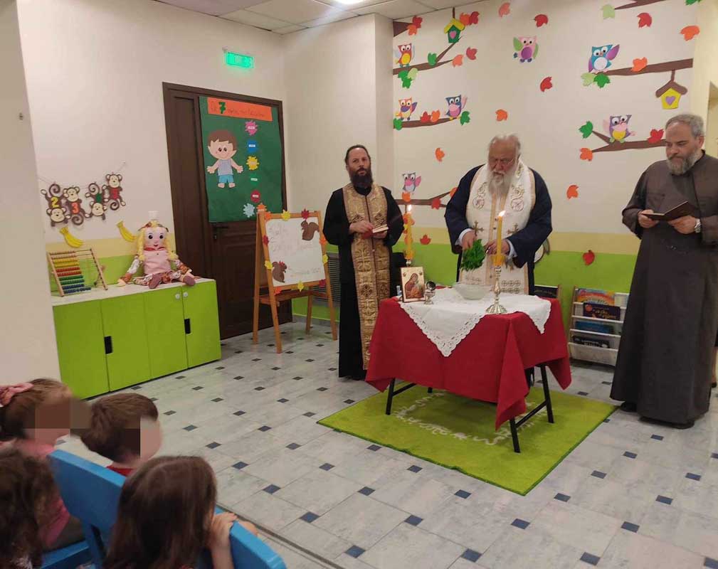 Ο Σεβασμιώτατος Μητροπολίτης Κερκύρας, Παξών και Διαποντίων Νήσων κ. Νεκτάριος επισκέφθηκε το πρωί της Παρασκευής 29 Σεπτεμβρίου 2023 τον Βρεφονηπιακό Σταθμό της Ιεράς Μητροπόλεως «ΕΛΕΝΗ ΜΠΕΛΛΟΥ», όπου τέλεσε τον αγιασμό για την έναρξη του νέου σχολικού έτους. Ο κ. Νεκτάριος χάρηκε με την παρουσία των μικρών παιδιών, συμμερίστηκε τον αυθορμητισμό τους, μίλησε σ’ αυτά και τους εξήγησε με απλό τρόπο την σημασία του αγιασμού ως προσευχής, τους μίλησε για την πίστη και τους έδωσε μικρές ευλογίες, ενώ, απευθυνόμενος στην διευθύντρια κ. Όμπαλη και τις παιδαγωγούς, τις προέτρεψε να φροντίζουν τα παιδιά εν παιδεία και νουθεσία Κυρίου, ενώ τις ευχαρίστησε για όλη την αγάπη που δείχνουν στην ευαίσθητη αυτή ηλικία. Αξίζει να επισημάνουμε ότι σύντομα θα ολοκληρωθούν και οι εργασίες για την λειτουργία Κέντρου Δημιουργικής Απασχόλησης για μεγαλύτερα παιδί, μία νέα προσφορά της τοπικής Εκκλησίας στη νεότητα.