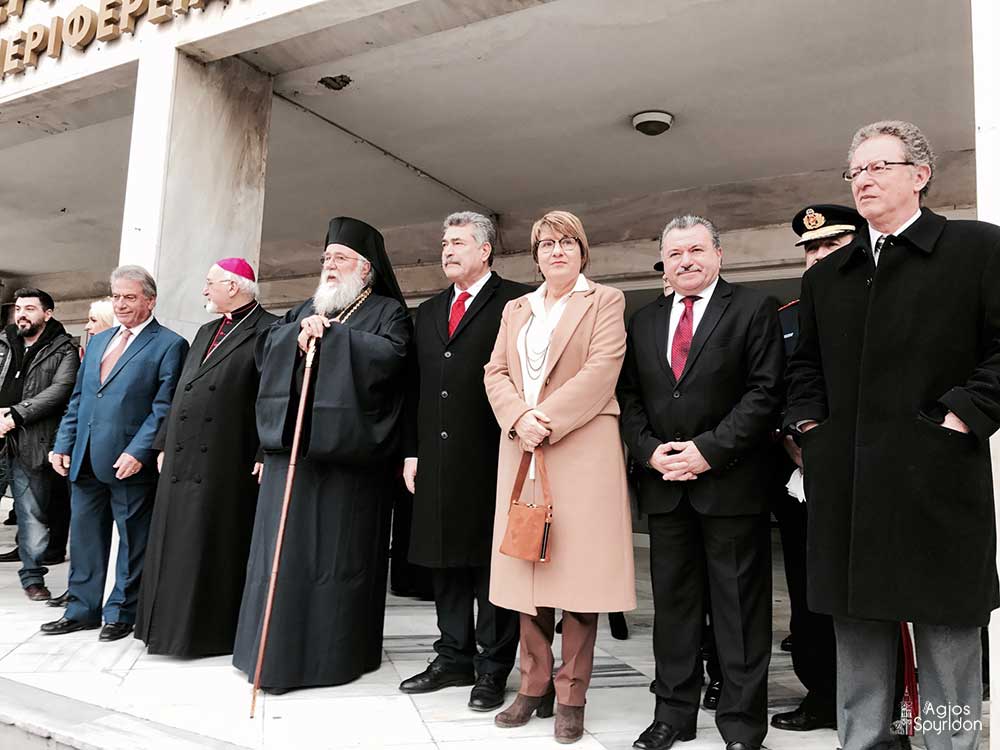 Μετά το πέρας της Θείας Λειτουργίας ο Σεβασμιώτατος τέλεσε Δοξολογία στον Ι. Μητροπολιτικό Ναό της Υ.Θ. Σπηλαιωτίσσης για το νέο έτος, με την παρουσία της πολιτικής και στρατιωτικής ηγεσίας του νησιού.