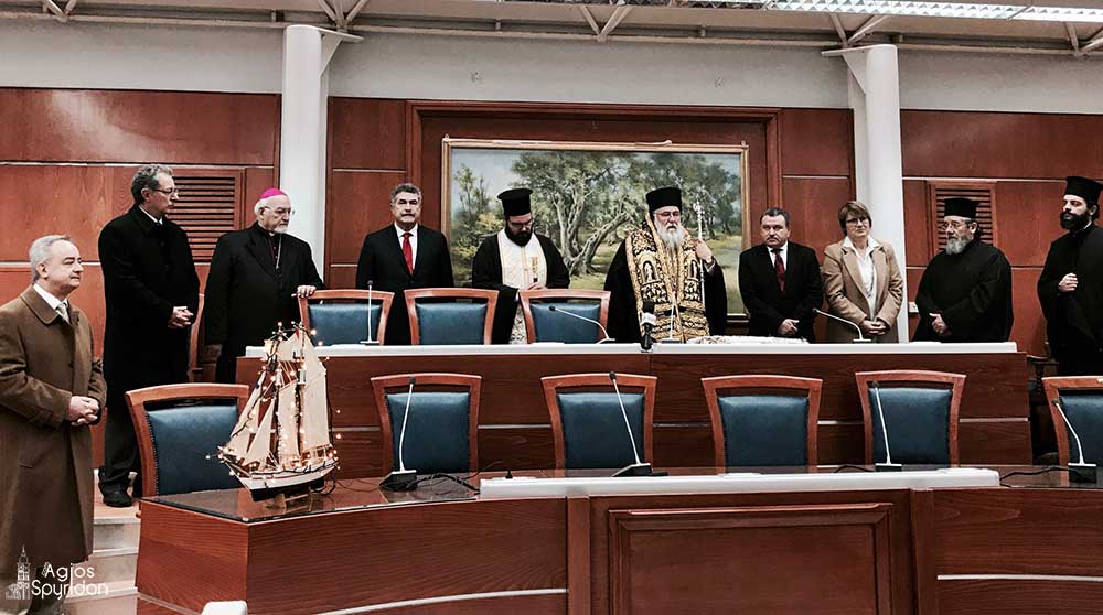 Κατόπιν ο Μητροπολίτης μετέβη στο κτίριο της Περιφερειακής Ενότητας Κέρκυρας, όπου ευλόγησε και έκοψε την Πρωτοχρονιάτικη Βασιλόπιτα της Περιφέρειας Ιονίων Νήσων.