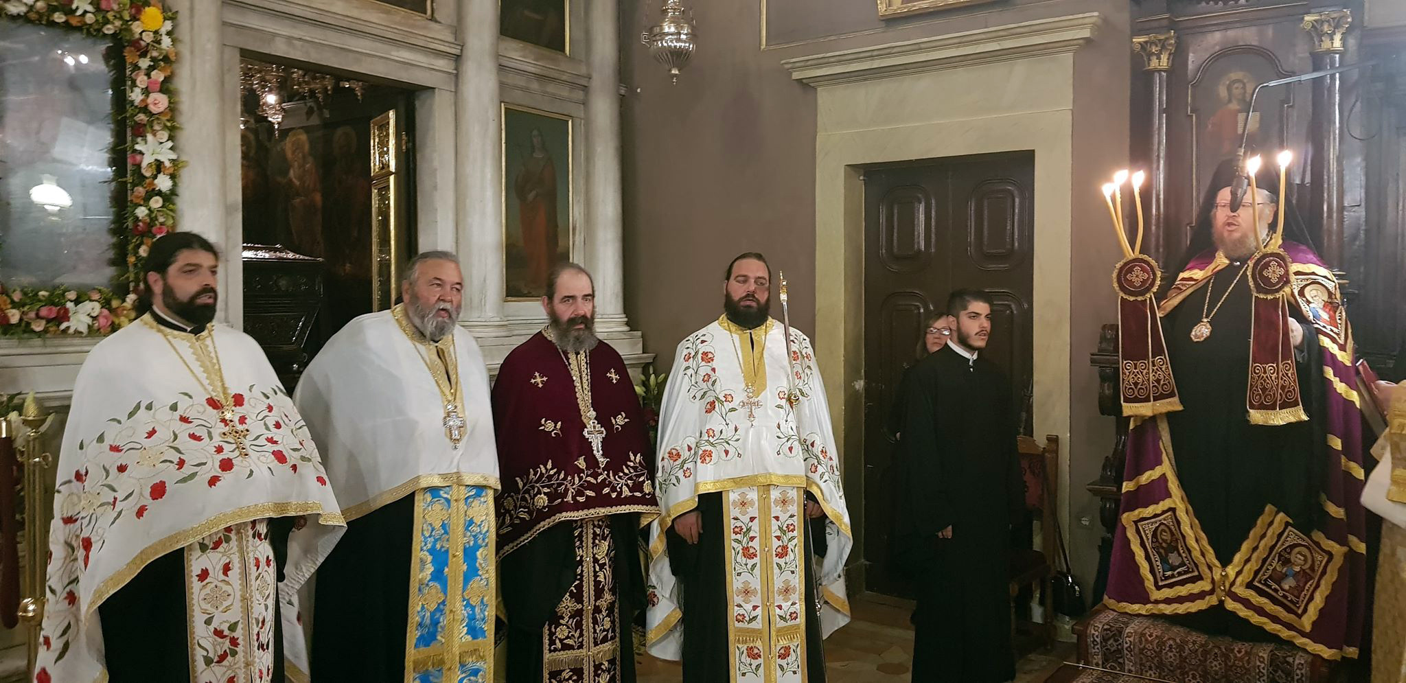 Στον Εσπερινό χοροστάτησε ο Σεβασμιώτατος Μητροπολίτης Ρούσσε κ. Ναούμ, ο οποίος προέρχεται από την Εκκλησία της Βουλγαρίας, ενώ συγχοροστάτησαν ο Σεβασμιώτατος Μητροπολίτης Βρεσθένης κ. Θεόκλητος και ο Σεβασμιώτατος Μητροπολίτης Κερκύρας, Παξών και Διαποντίων Νήσων κ. Νεκτάριος.