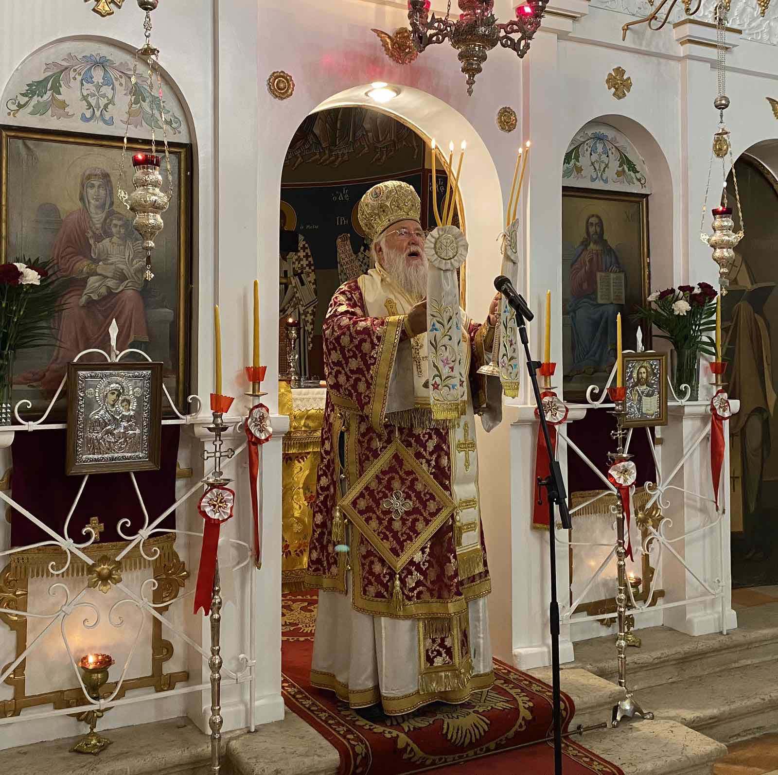 Κατά την Θεία Λειτουργία ο Σεβασμιώτατος στο κήρυγμα του αναφέρθηκε σε ένα θέμα πνευματικό το οποίο απασχολεί διαχρονικά την ανθρωπότητα. Έλαβε αφορμή από την ευαγγελική περικοπή του δαιμονισμένου από την πόλη των Γαδαρηνών και δι’ ολίγων αναφέρθη στην παραβολή και στο φαινόμενο των δαιμονίων που κρατούσαν και ταλαιπωρούσαν τον δυστυχισμένο άνθρωπο.