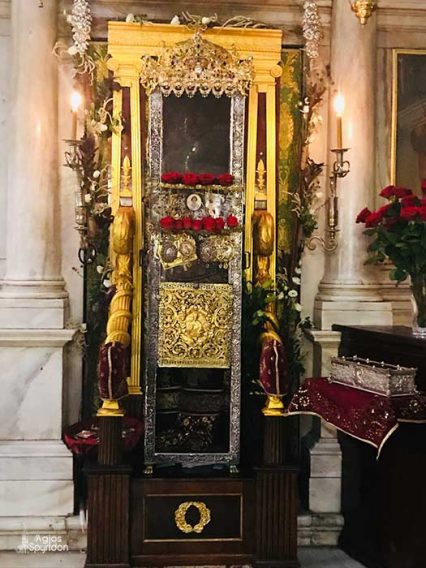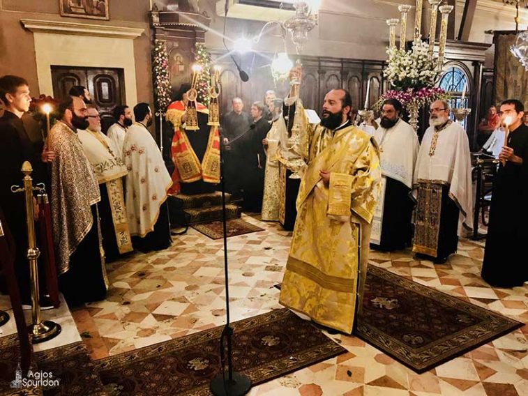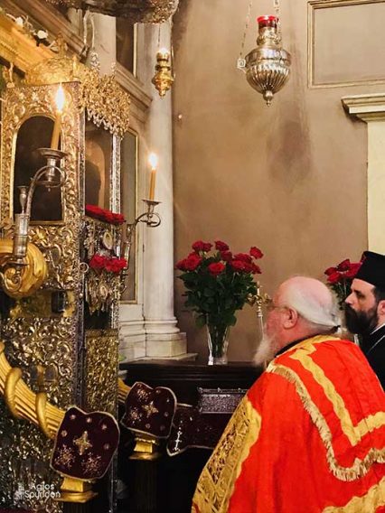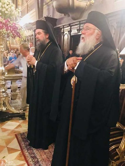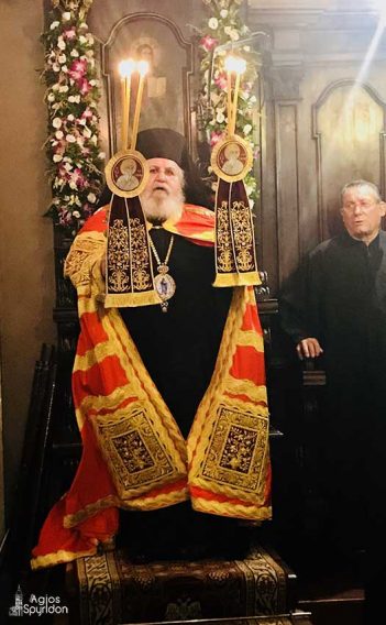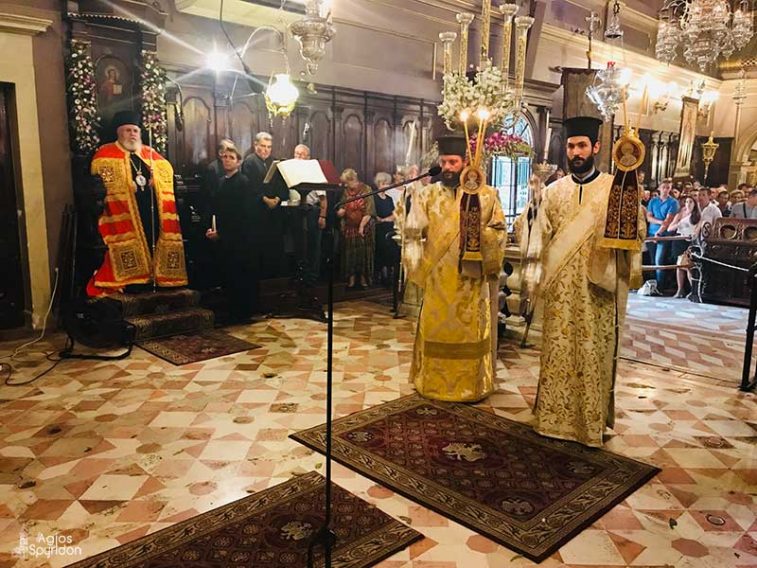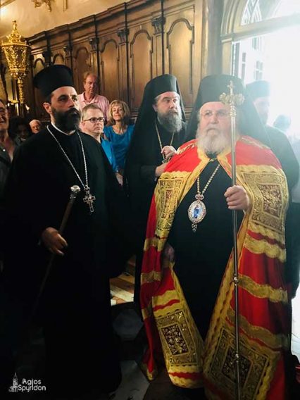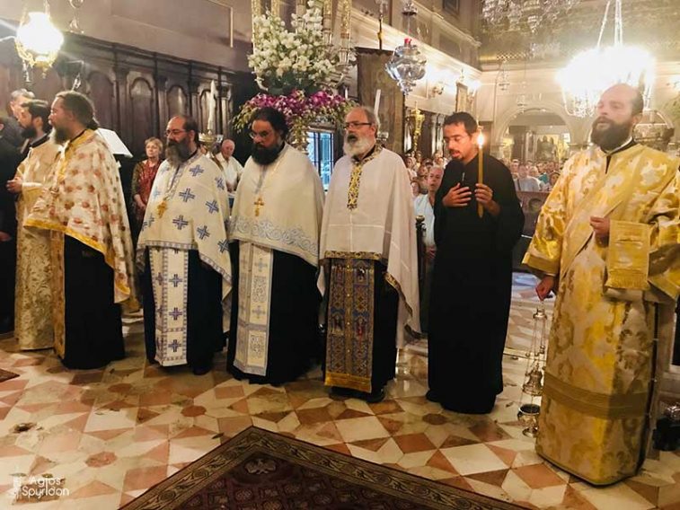 Το απόγευμα του Σαββάτου 11 Αυγούστου 2018 τελέστηκε στο Ιερό Προσκύνημα του Αγίου και Θαυματουργού Σπυρίδωνος Πολυαρχιερατικός Εσπερινός, επί τη αναμνήσει του θαύματος του Αγίου και της απαλλαγής της νήσου από τους Αγαρηνούς το έτος 1716, χοροστατούντος του Σεβασμιωτάτου Μητροπολίτου Καισαριανής, Βύρωνος και Υμηττού κ. Δανιήλ και συγχοροστατούντος του Σεβασμιωτάτου Μητροπολίτου Σερρών και Νιγρίτης κ. Θεολόγου και του επιχώριου Σεβασμιωτάτου Μητροπολίτου Κερκύρας, Παξών και Διαποντίων Νήσων κ. Νεκταρίου.