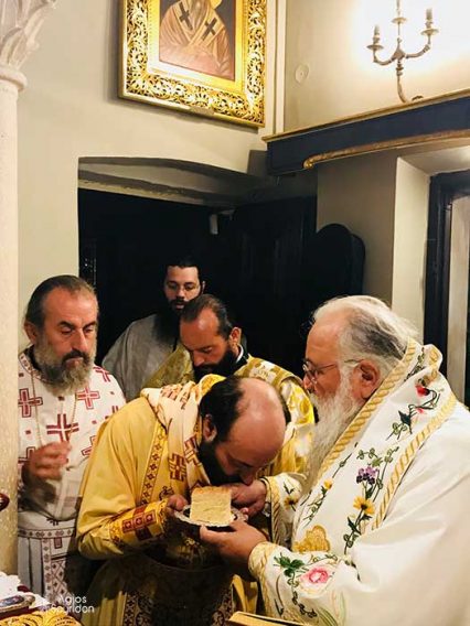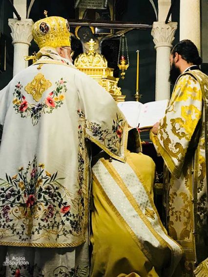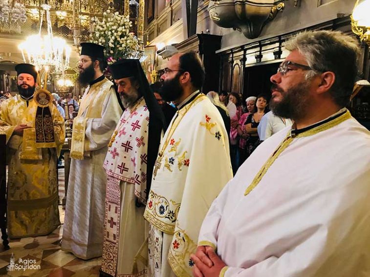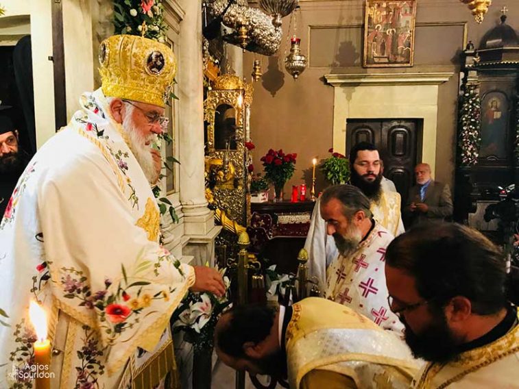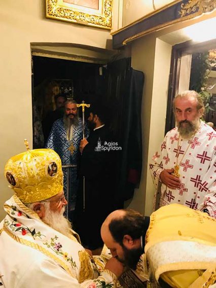 Τελέστηκε το πρωί της Δευτέρας 13 Αυγούστου 2018 ο Όρθρος και η Θεία Λειτουργία στο Ιερό Προσκύνημα του Αγίου και Θαυματουργού Σπυρίδωνος, ιερουργούντος του Σεβασμιωτάτου Μητροπολίτου Κερκύρας, Παξών και Διαποντίων Νήσων κ. Νεκταρίου, ο οποίος και χειροτόνησε Πρεσβύτερο τον Ιεροδιάκονο π. Άγγελο Κοντούτση.