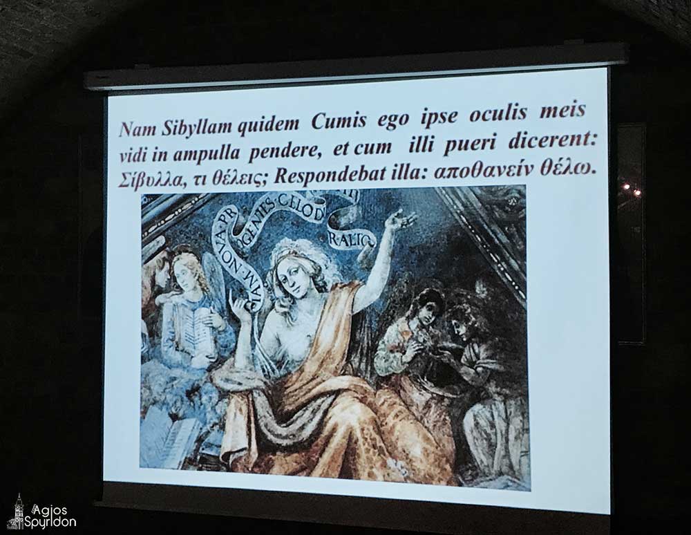 Τις πηγές που ο ποιητής παραθέτει, όπως επίσης και ανάλυση και προβληματισμούς παρουσίασε ο κ. Αριστείδης Μουζακίτης, Εκπαιδευτικός, Δρ. Μαθηματικός, Διευθυντής του 2ου Γυμνασίου Κέρκυρας, ο οποίος μελέτησε σε βάθος το κείμενο και αξιοποίησε καταπληκτικά πηγές. Αποσπάσματα από το ποίημα διάβασε εξαιρετικά η μαθήτρια Έλενα Μουζακίτη, ενώ ο. π. Θεμιστοκλής Μουρτζανός συζήτησε με τον κ. Μουζακίτη για το βαθύτερο περιεχόμενο του ποιήματος.