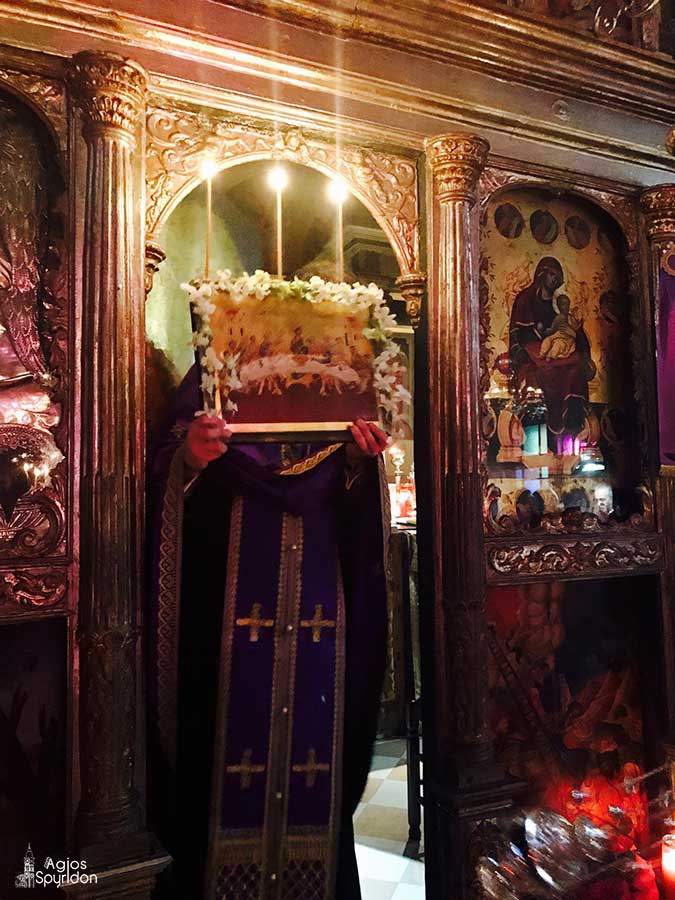 Στο κήρυγμά του ο Μητροπολίτης Κερκύρας επέμεινε στην σημασία της προδοσίας του Κυρίου, από τον Ιούδα του Ισκαριώτη, που ανήκε στον στενό θα λέγαμε κύκλο των Μαθητών. Ο διάβολος κατέλαβε την καρδιά του Ιούδα, όπως μας αναφέρει, τόσο το Ιερό Ευαγγέλιο, όσο και η υμνολογία του Όρθρου της Μ. Πέμπτης.