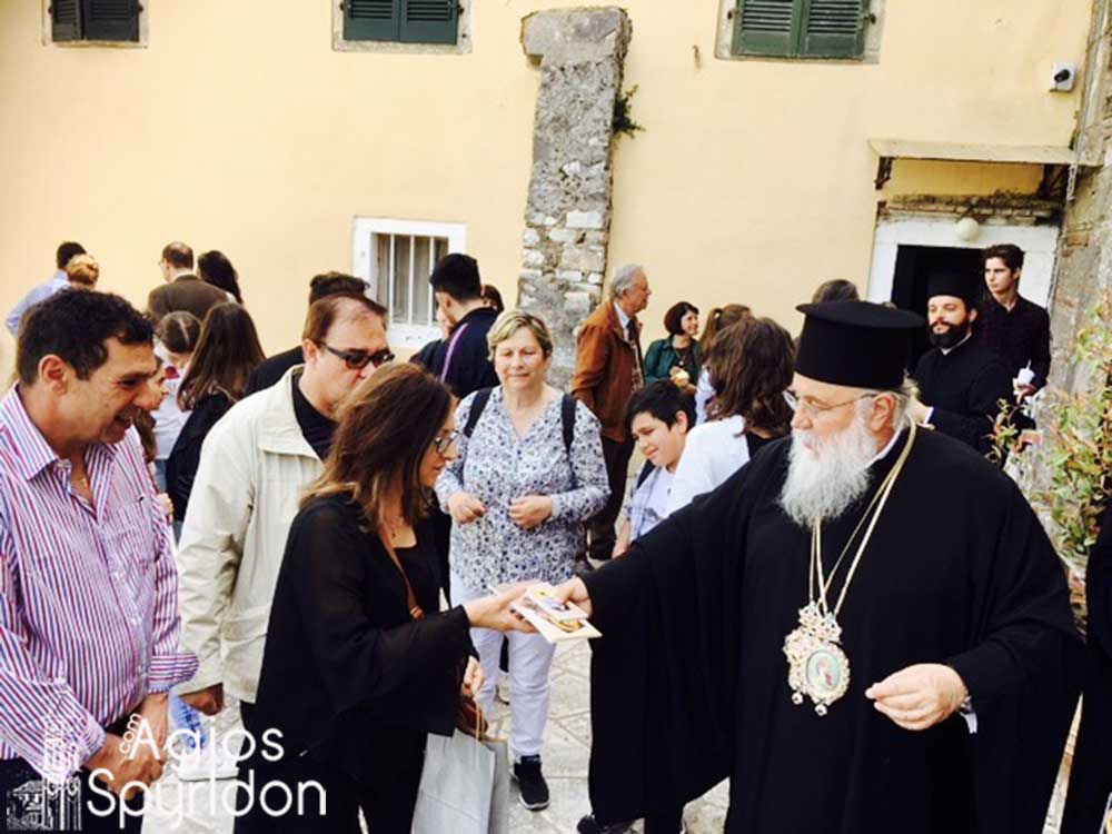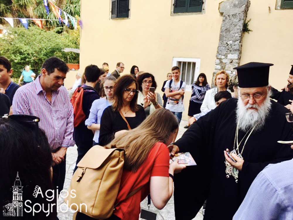 Μετά τη Θεία Λειτουργία ο Σεβασμιώτατος υποδέχθηκε μαθητές Ελληνικού σχολείου από την Αυστραλία, οι οποίοι βρίσκονται στην Κέρκυρα, προσκεκλημένοι του 7ου Γυμνασίου Κερκύρας. Η τοπική Εκκλησία στηρίζει αυτή την προσπάθεια του 7ου Γυμνασίου, η οποία πραγματοποιείται κάθε χρόνο. Τόσο ο Μητροπολίτης Κερκύρας, όσο και οι Ενορίες και τα Μοναστήρια του νησιού συμβάλουν στην φιλοξενία των μαθητών.