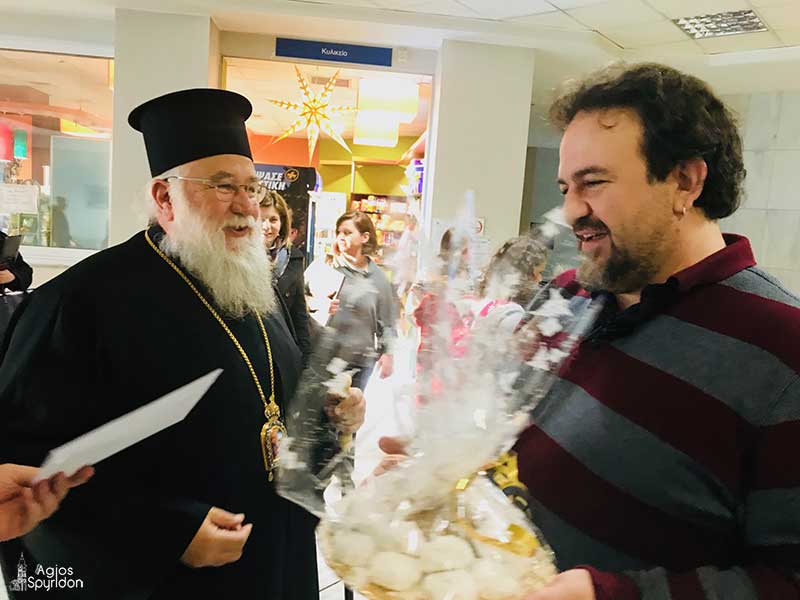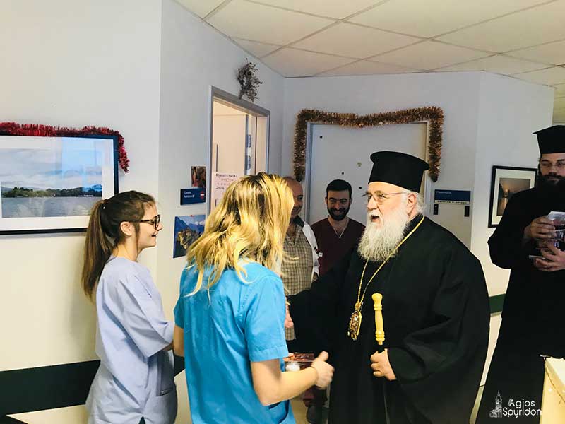 Ο Μητροπολίτης Κερκύρας πρόσφερε κουραμπιέδες και μελομακάρονα, καθώς επίσης και ευλογίες στους πάσχοντες συνανθρώπους μας, αλλά και στο νοσηλευτικό προσωπικό ευχόμενος σε όλους καλά και ευλογημένα Χριστούγεννα και ευτυχές και γεμάτο υγεία το νέο έτος 2019.