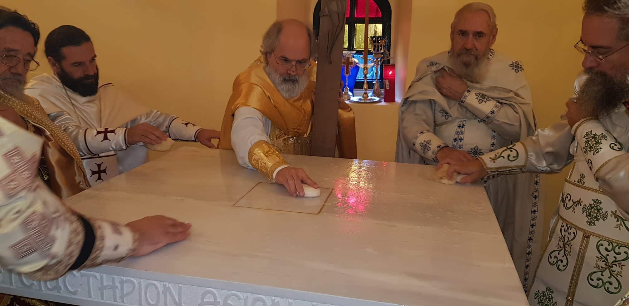 Μιλώντας προς τους προσκυνητές της μονής ο κ. Νεκτάριος τόνισε ότι η παράδοση της εκκλησιαστικής ζωής έχει ως κέντρο της τον ναό, τα άγια των αγίων, την αγία Τράπεζα, εκεί όπου τελείται το αναίμακτο μυστήριο της θείας Ευχαριστίας. Η Εκκλησία, με επικεφαλής τον επίσκοπό της, τελεί την ειδική ακολουθία για την διασαλευθείσα αγία τράπεζα, ουσιαστικά επανεγκαινιάζοντας τον ιερό ναό, για να συνεχίσει να λατρεύεται σ  αυτόν κατά την εκκλησιαστική τάξη ο Θεός.