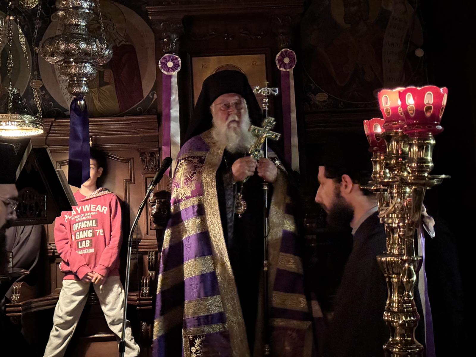 Ο Σεβασμιώτατος ευχήθηκε στους παρισταμένους καλή συνέχεια της Αγίας και Μεγάλης Εβδομάδος, προτρέποντας όλους να εισέλθουν στο Πάθος του Χριστού με αλήθεια και ειλικρίνεια καρδίας, ώστε να αξιωθούν και της χαράς της Αναστάσεως.